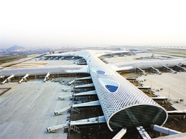 深圳機場T3航站樓是深圳寶安國際機場擴建工程的主體部分,由深圳機場T3航站樓和GTC兩個部分組成。其中T3航站樓占地19.5萬平方米,南北長約1128米,東西寬約640米,總建筑面積45.1萬平方米,方大集團承建的立面幕墻面積為16.7萬平方米,主立面采用呈60.2度傾斜的方大Low-E節(jié)能環(huán)保玻璃幕墻,既為旅客帶來更為開闊的視野,也為整個大廳帶來充足的自然光。