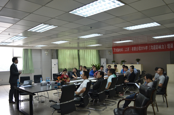 5月17日至18日,為提高中高層管理人員的溝通技巧及基層骨干的職業(yè)化素質(zhì),江西新材在公司辦公大樓二樓會議室,分別組織開展了主題為《溝通影響力》及《職業(yè)化塑造》的培訓(xùn)課程,由英國威爾士大學(xué)MBA的呂錚老師進(jìn)行授課。