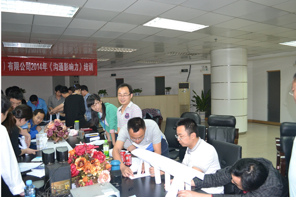 第一天的課程為《溝通影響力》,共7個課時,江西新材中高層領(lǐng)導(dǎo)及部分業(yè)務(wù)骨干共計23人參與了本次培訓(xùn)。本次培訓(xùn)課程的主要內(nèi)容包括信任模式的建立、冰山理論、商談六步驟、人際溝通風(fēng)格的分類、辨識以及應(yīng)對。呂錚老師通過演講、視頻片段等方式為大家很好的詮釋了人際溝通的理念知識,同時通過小組討論、做游戲及角色扮演等方式讓大家很好的模擬了課程的實戰(zhàn)效果。