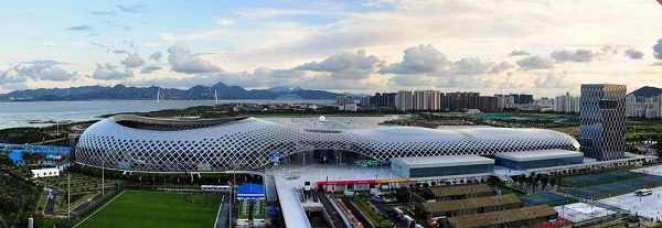 深圳灣體育中心“春繭”坐落于深圳市南山后海中心區(qū),是第26屆世界大學生夏季運動會分會場之一和開幕式場地,總建筑面積約32.2萬平方米,其體育場、體育館、游泳館被置于一個白色巨型網(wǎng)格狀鋼結構屋面下,線條柔美的大屋頂猶如孕育破繭而出沖向世界的運動健兒的孵化器,表現(xiàn)出新的活力。