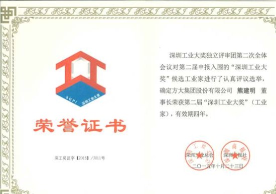 20多年來(lái),方大集團(tuán)在熊建明董事長(zhǎng)的帶領(lǐng)下,始終走實(shí)業(yè)化道路,以“創(chuàng)一流企業(yè)、創(chuàng)一流產(chǎn)品、創(chuàng)一流服務(wù)”為目標(biāo),堅(jiān)持“科技為本,創(chuàng)新為源”的經(jīng)營(yíng)理念,大力實(shí)施科技創(chuàng)新,勇于樹(shù)立行業(yè)標(biāo)桿,成為我國(guó)節(jié)能幕墻、新能源、地鐵屏蔽門、半導(dǎo)體照明(LED)等領(lǐng)域的領(lǐng)軍企業(yè),對(duì)我國(guó)建筑幕墻、太陽(yáng)能光伏、地鐵屏蔽門、半導(dǎo)體照明(LED)及相關(guān)鏈條產(chǎn)業(yè)的興起和健康發(fā)展起到了重要的推動(dòng)作用,為振興國(guó)家工業(yè)、發(fā)展實(shí)體經(jīng)濟(jì)做出了貢獻(xiàn),先后榮獲“中國(guó)工業(yè)行業(yè)狀元”、“中國(guó)工業(yè)行業(yè)排頭兵企業(yè)”等榮譽(yù),此次摘取“深圳工業(yè)大獎(jiǎng)”兩項(xiàng)殊榮是業(yè)界對(duì)熊建明董事長(zhǎng)領(lǐng)導(dǎo)下的方大集團(tuán)在工業(yè)領(lǐng)域所做貢獻(xiàn)的又一肯定。