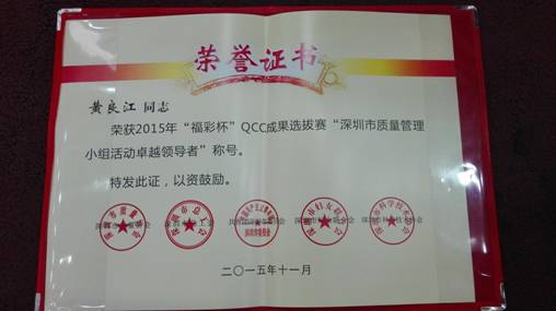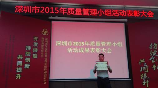 深圳市2015年質(zhì)量管理小組活動優(yōu)秀成果、優(yōu)秀企業(yè)和先進(jìn)個人獎是由深圳市質(zhì)量協(xié)會、深圳市總工會、共青團(tuán)深圳市委員會、深圳市婦女聯(lián)合會和深圳市科技技術(shù)協(xié)會聯(lián)合審定,旨在表彰在2015年深圳市質(zhì)量管理小組活動中涌現(xiàn)出的優(yōu)秀企業(yè)、QC小組和個人。