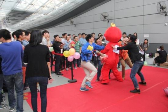 下午四時(shí)許,壽星們紛紛入場,在入口處與福猴擊掌相慶,在享用精美的小食甜點(diǎn)之后,即開啟了緊張激烈的游戲環(huán)節(jié)?;顒?dòng)當(dāng)天共進(jìn)行了投壺、最美猴音、踩氣球三輪游戲。在投壺游戲環(huán)節(jié)中,壽星們一一登場,上演了“10中6”、“4連中”等高水準(zhǔn)表演,引起現(xiàn)場陣陣驚呼;“最美猴音”環(huán)節(jié)引爆了現(xiàn)場氛圍,當(dāng)美妙的歌曲響起,猜中曲目答案的壽星如箭矢離弦,奮力沖刺抱住福猴,并向主持人大聲報(bào)出曲目答案,不少壽星因心情激動(dòng),用力過猛,差點(diǎn)與福猴來了個(gè)“倒地摔”,歡樂的場面引起哄堂大笑;踩氣球環(huán)節(jié)則絲毫不亞于一場“小型格斗”,壽星們充分展示自己的智慧與實(shí)力,奮力踩爆對手腳上系著的氣球,矯捷的身手high翻全場。游戲中,每輪成功闖關(guān)的選手還領(lǐng)取到LED護(hù)眼燈、福猴玩偶等豐富實(shí)用的獎(jiǎng)品。