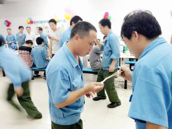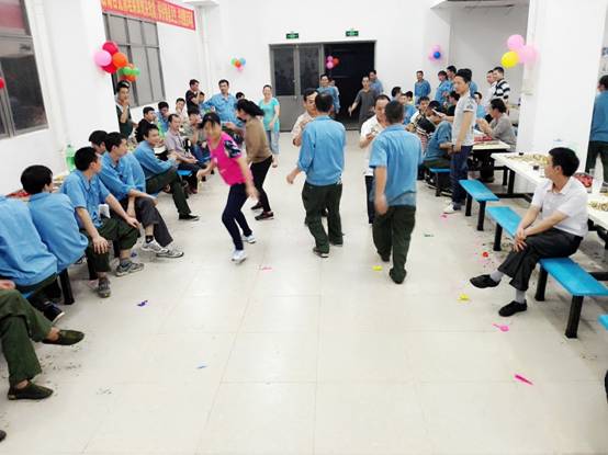 在員工享用美食與水果的同時(shí),當(dāng)晚現(xiàn)場(chǎng)進(jìn)行了踩氣球、夾傳瓜子與紙杯傳水三輪游戲,每個(gè)游戲都由壽星們自由組隊(duì)參與。第一個(gè)游戲“踩氣球”,兩人三足需要高度的協(xié)調(diào)與配合,為了躲避對(duì)手突襲,壽星們上躥下跳,左右擺動(dòng),動(dòng)作滑稽,惹得全場(chǎng)哄堂大笑;第二個(gè)游戲“夾傳瓜子”,大家爭(zhēng)分奪秒往下一位隊(duì)友手中輸送瓜子,在輸送的過(guò)程中如果瓜子不慎掉落只好重新開(kāi)始,在圍觀人員的助威吶喊聲中,壽星們加快步伐只為成功夾傳更多的瓜子;最后一個(gè)游戲“紙杯傳水”,要求選手們動(dòng)作謹(jǐn)慎且快,配合度高,為把紙杯的水倒入隊(duì)友的紙杯中時(shí)能夠滴水不漏,大家的傳輸POSE千奇百怪,笑料百出,現(xiàn)場(chǎng)一片歡聲笑語(yǔ)。
