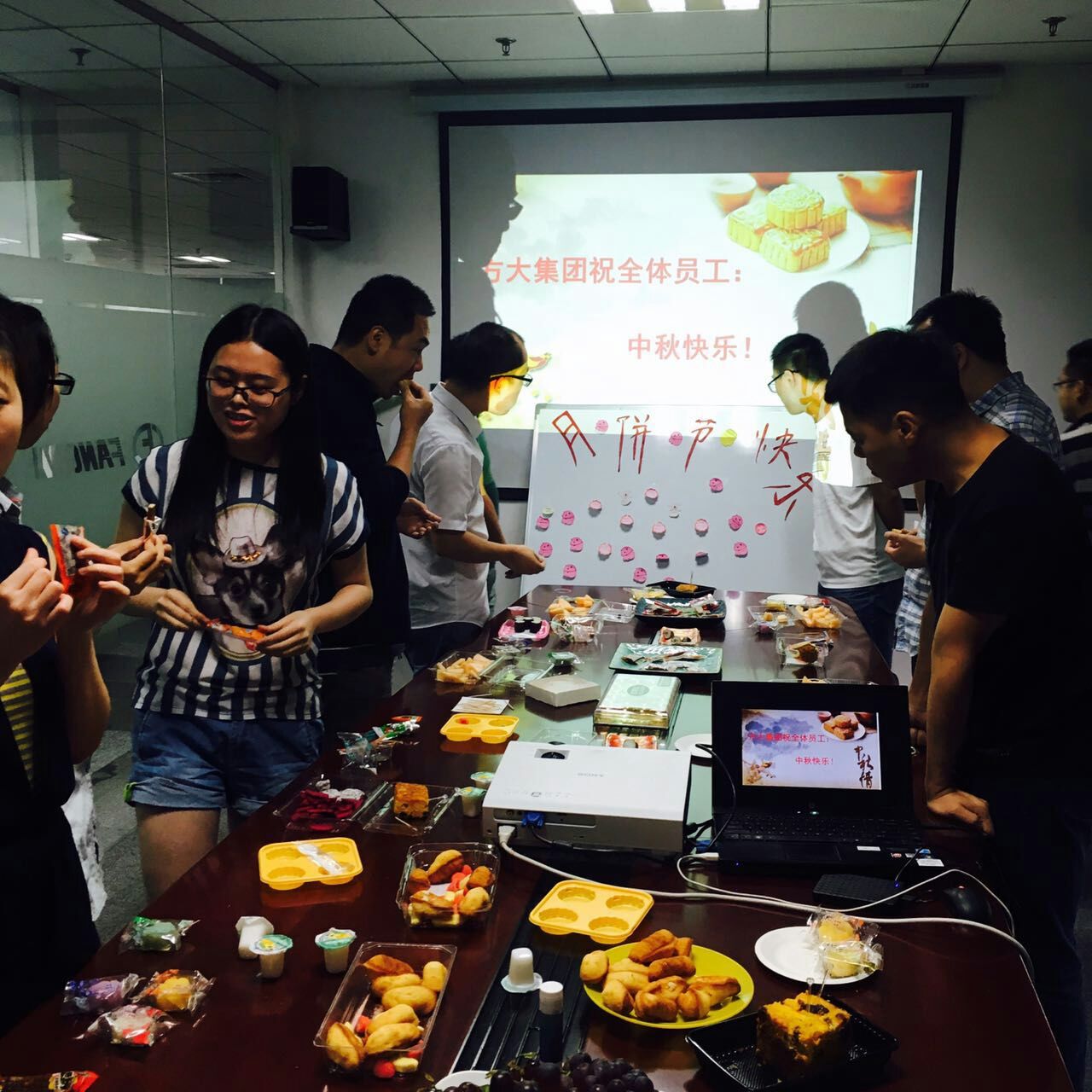 在方大集團(tuán)成都公司,9月14日下午舉辦了一次輕松、熱鬧的中秋茶話會(huì)。團(tuán)聚和暢聊是這次活動(dòng)的主要內(nèi)容,茶話會(huì)伊始,先由近期新入職同事做自我介紹,接下來(lái)各同事彼此傳遞中秋祝福?;顒?dòng)現(xiàn)場(chǎng)歡笑聲、祝福聲不絕于耳,精心準(zhǔn)備的水果點(diǎn)心、悠揚(yáng)的音樂(lè)和中秋主題背景共同營(yíng)造了濃濃的中秋佳節(jié)氛圍。為了夢(mèng)想,我們遠(yuǎn)離家鄉(xiāng),但在這里,我們可以暫且放下一切包袱,沉醉在歡聲笑語(yǔ)中,忘卻思鄉(xiāng)的煩惱。因?yàn)橛蟹酱笕司墼谝黄穑晕覀円恢倍疾粫?huì)感到孤單。