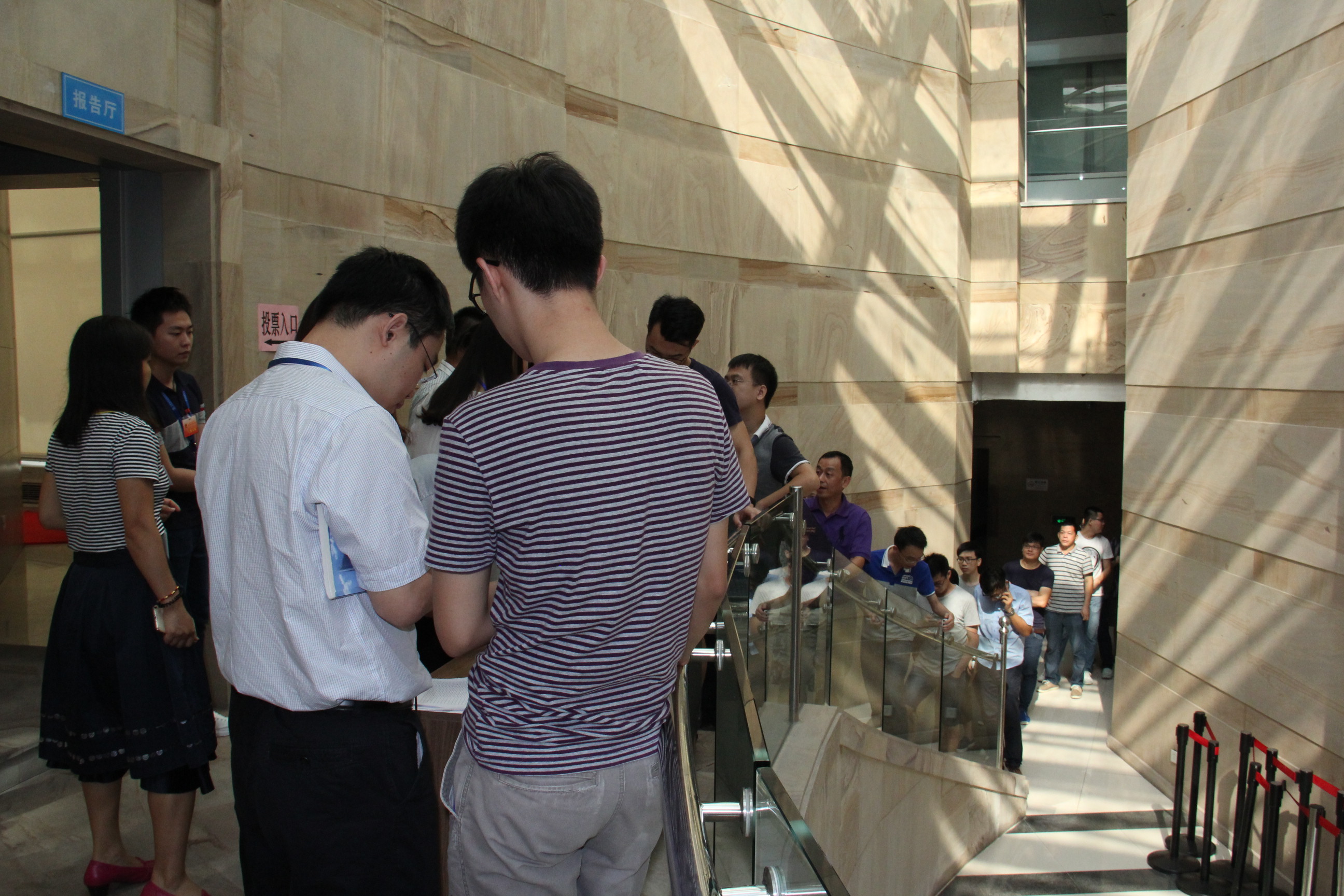 9月22日是南山區(qū)第七屆人大代表換屆選舉的選舉日。全區(qū)選民在這天依法行使民主權(quán)利,投下莊嚴(yán)而神圣的一票,選舉產(chǎn)生出新一屆的人大代表。在方大選區(qū),561名選民一大早便來到投票選舉的地點(diǎn),排起了長長的隊(duì)伍,等候著行使自己當(dāng)家作主的權(quán)利。選民們憑選民證登記后依次入場,整個過程有序地進(jìn)行。