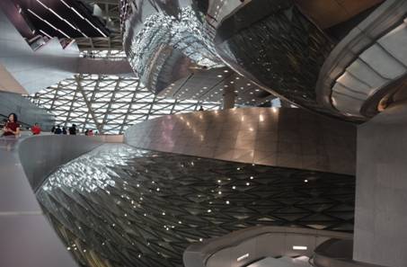 “兩館”作為市民了解城市發(fā)展進(jìn)程與領(lǐng)略當(dāng)代藝術(shù)現(xiàn)狀的展館,完全建成之后每年將吸引龐大的游客量。如何塑造一個舒適的游覽空間是擺在建筑設(shè)計者和建造者面前的一個難題?!皟绅^”采用大量傾斜、扭曲和旋轉(zhuǎn)的曲面幕墻設(shè)計,保證了最大的采光效果,方大幕墻系統(tǒng)以精細(xì)的產(chǎn)品設(shè)計和卓越的產(chǎn)品性能,很好的滿足了設(shè)計師的要求,營造了一個適宜觀覽的、自然柔和的光影空間,體現(xiàn)了以人為本的產(chǎn)品理念。