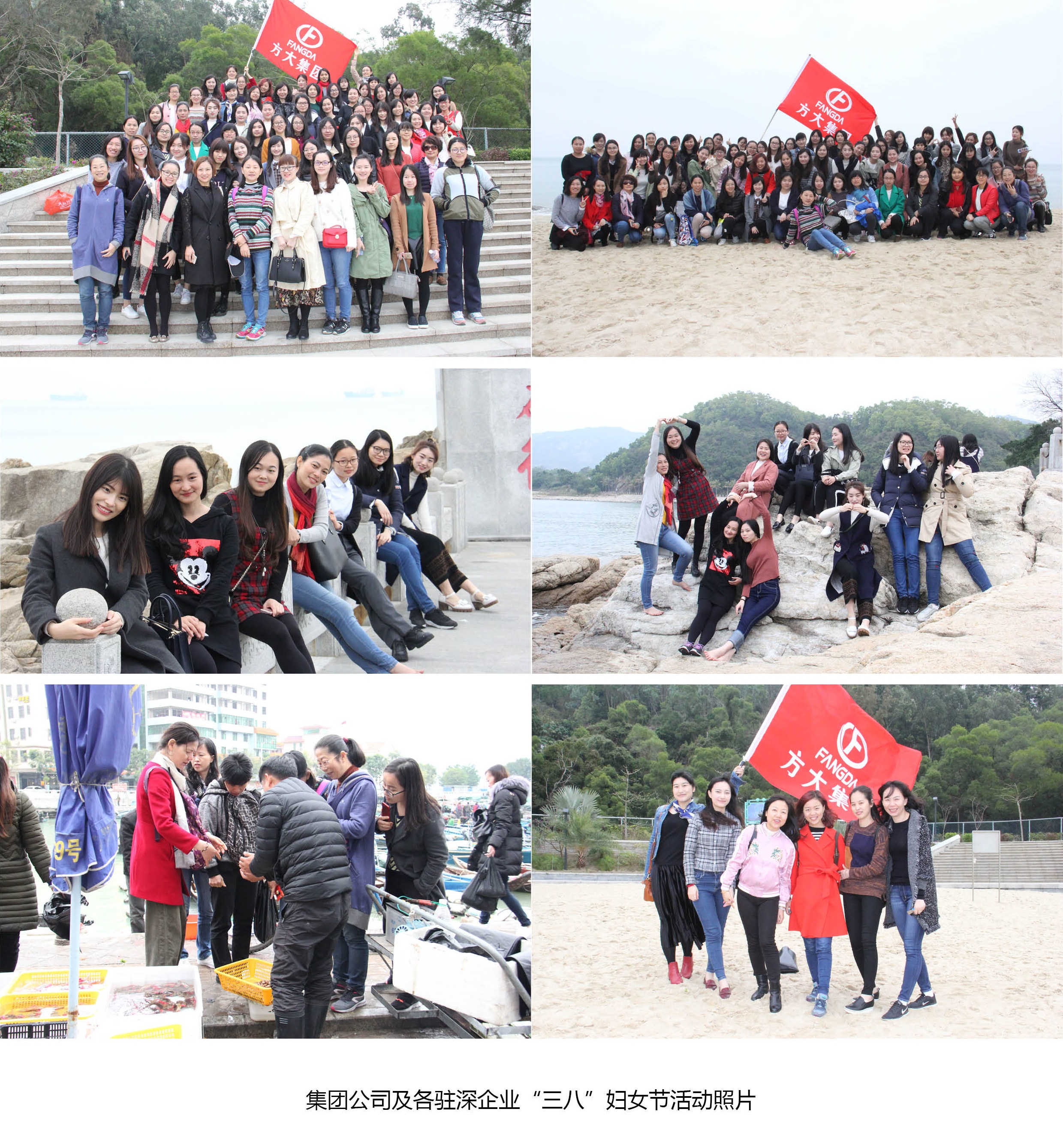 在深圳,集團(tuán)公司及各駐深企業(yè)組織全體女員工前往深圳東部海岸進(jìn)行休閑觀光及聚餐活動(dòng)。下午1點(diǎn)30分,駐深企業(yè)女員工一行80余人在深圳方大大廈集結(jié)完畢,隨即分乘兩輛大巴前往深圳東部官湖角海灘。約90分鐘車程后,觀光團(tuán)達(dá)到目的地。在這個(gè)屬于女性同胞的節(jié)日里,天公也別樣作美,上午淅瀝瀝的大雨,一到下午就停了,地面積水也逐漸干了。美麗的官湖角海灘上,暖風(fēng)輕拂,碧海一望無際。美麗的方大女員工們?cè)诤┥虾嫌傲裟?,結(jié)伴游玩。她們或放眼眺望欣賞海景,或高舉手機(jī)專注地自拍,或并肩攜手踏浪,其樂融融。離開官湖角海灘后,方大女員工們一道專程前往惠陽(yáng)澳頭村聚餐,一品滋美的海鮮大餐。