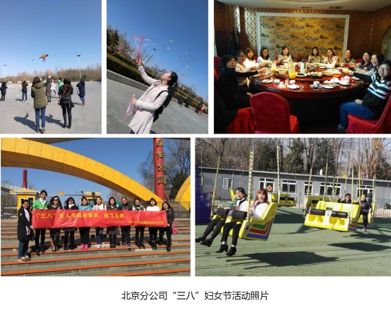 在北京,北京分公司的每位女員工們節(jié)日當(dāng)天一大早就收到了公司精心準(zhǔn)備的一束玫瑰花;中午下班后女員工們?cè)诓妥郎淆R聚一堂,舉杯慶祝,祝愿彼此節(jié)日快樂,共度美好時(shí)光;下午,北京分公司的女員工一同前往朝陽(yáng)公園踏青游玩,在藍(lán)天白云下,放風(fēng)箏,吹泡泡,在游樂場(chǎng)體驗(yàn)著驚險(xiǎn)刺激的項(xiàng)目,玩的不亦樂乎。
