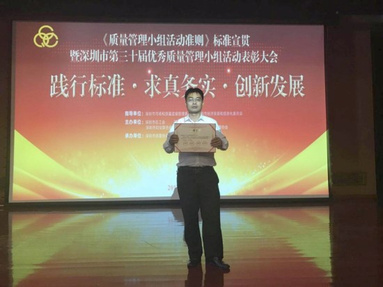 黃良江獲頒“深圳市質量信得過班組先進個人”榮譽獎