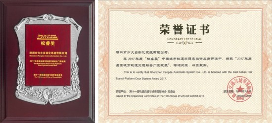 自動(dòng)化公司作為全球規(guī)模宏大的軌道交通站臺(tái)門(mén)系統(tǒng)供應(yīng)商,獨(dú)立研發(fā)具有完全自主知識(shí)產(chǎn)權(quán)的站臺(tái)門(mén)系統(tǒng),已廣泛應(yīng)用于全球32個(gè)城市的城市軌道交通中,每天有超過(guò)2000萬(wàn)人次使用方大站臺(tái)門(mén)系統(tǒng),在市場(chǎng)占有率、技術(shù)、品牌等方面居行業(yè)龍頭地位。此次獲頒“2017年度最佳城市軌道交通站臺(tái)門(mén)系統(tǒng)獎(jiǎng)”,反映了軌道交通行業(yè)對(duì)自動(dòng)化公司科創(chuàng)技術(shù)水平和發(fā)展能力的認(rèn)可。