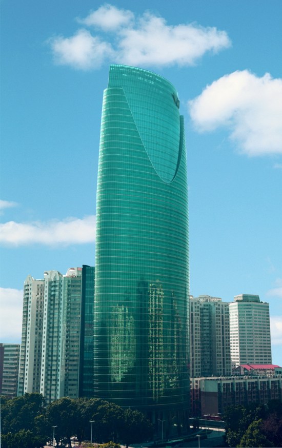 大廈外立面主要采用銀色鋁合金框+綠色和灰色中空LOW-E玻璃幕墻系統(tǒng),樓層間采用不銹鋼裝飾板,玻璃幕墻外側(cè)設(shè)置橫向的不銹鋼遮陽(yáng)板,通過(guò)外墻微妙的反光和綠樹(shù)、藍(lán)天、白云等自然景觀和周邊建筑物隨著時(shí)間在建筑物上的倒影變化,同時(shí)遮陽(yáng)板也將隨著陽(yáng)光照射的角度在樓身生成不斷變化的影子紋理,使整個(gè)建筑變得很豐富,又能與周邊建筑和環(huán)境相協(xié)調(diào)。