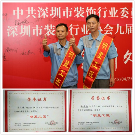 日前,深圳市方大建科集團(tuán)有限公司員工李紅林、魏正培,憑借過硬的技術(shù)、精湛的工藝,在深圳市裝飾行業(yè)明星工匠評選活動(dòng)中脫穎而出,榮獲“明星工匠”稱號。