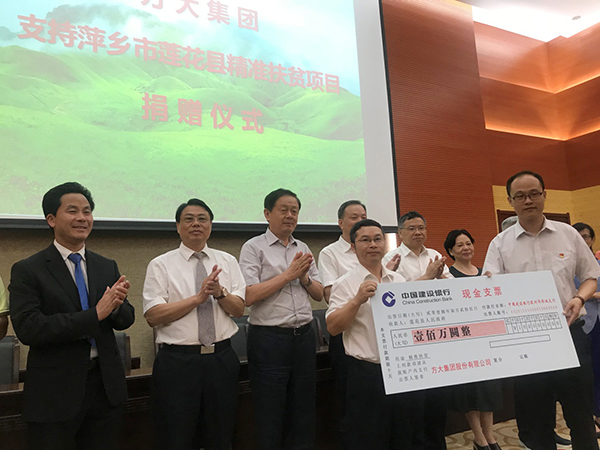 7月25日,方大集團(tuán)向江西省萍鄉(xiāng)市蓮花縣捐款100萬元用于精準(zhǔn)扶貧項(xiàng)目建設(shè)。