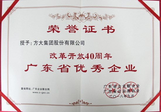 9月26日,由廣東省企業(yè)聯(lián)合會、廣東省企業(yè)家協(xié)會主辦的第24屆廣東省企業(yè)家活動日大會在廣州舉行,活動對“改革開放40周年廣東省優(yōu)秀企業(yè)、優(yōu)秀企業(yè)家”進行了表彰,方大集團因在改革開放以來作出的突出貢獻被授予“改革開放40周年廣東省優(yōu)秀企業(yè)”稱號。省委書記李希接見了方大集團等優(yōu)秀企業(yè)、優(yōu)秀企業(yè)家代表,省長馬興瑞出席會議并講話。