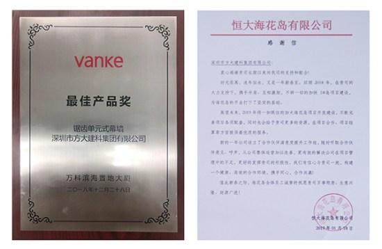 富力集團(tuán)授予方大建科“2018年度優(yōu)秀承建商”、前海人壽授予方大建科“2018年度優(yōu)秀供應(yīng)商”、 萬(wàn)科授予方大建科“最佳產(chǎn)品獎(jiǎng)”、恒大海花島給方大建科一封感謝信。年末獲得的各大地產(chǎn)商授予的榮譽(yù),涵蓋產(chǎn)品質(zhì)量、工程交期、客戶服務(wù)等多個(gè)方面,是業(yè)主對(duì)方大建科在2018年經(jīng)營(yíng)管理及公司綜合實(shí)力的充分認(rèn)可。
