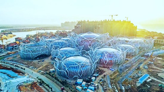 海口·恒大?;◢u位于海南省儋州市,該島由三個(gè)既獨(dú)立又緊密相連的離岸式島嶼組成,從高空俯瞰,形狀猶如一朵盛開(kāi)的鮮花。方大建科承建國(guó)際會(huì)議中心幕墻工程,由9個(gè)單獨(dú)的球型建筑組成,各球體幕墻采用了玻璃面板。項(xiàng)目團(tuán)隊(duì)攻克異形幕墻設(shè)計(jì)施工、鋼結(jié)構(gòu)屋蓋跨度大以及施工作業(yè)面小等難題,與業(yè)主攜手并肩,互相激勵(lì),不辭一切加快1#島項(xiàng)目建設(shè),為?;◢u的開(kāi)業(yè)打下了堅(jiān)實(shí)的基礎(chǔ)。