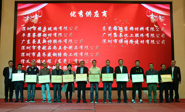 合作伙伴大會(huì)期間對(duì)在過(guò)去一年在與方大建科合作中有突出貢獻(xiàn)的合作伙伴頒發(fā)榮譽(yù)獎(jiǎng)項(xiàng),會(huì)上,方大建科合作進(jìn)步獎(jiǎng)、最佳服務(wù)獎(jiǎng)、卓越品質(zhì)獎(jiǎng)、優(yōu)秀供應(yīng)商、金牌合作伙伴供應(yīng)商五項(xiàng)大獎(jiǎng),東莞南玻工程玻璃有限公司等33家企業(yè)受到榮譽(yù)表彰。