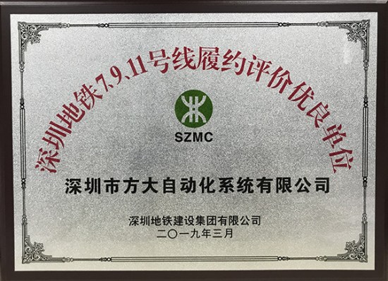 近日,深圳地鐵建設(shè)集團(tuán)有限公司授予方大集團(tuán)全資子公司方大智創(chuàng)科技有限公司(原深圳市方大自動(dòng)化系統(tǒng)有限公司)“履約評(píng)價(jià)優(yōu)良單位”獎(jiǎng)。