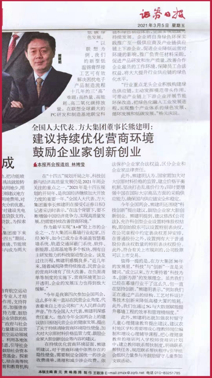 在“十四五”規(guī)劃開局之年,科技創(chuàng)新與經(jīng)濟高質(zhì)量發(fā)展仍是2021年兩會關(guān)注的重點之一?!?021年是十四五規(guī)劃的開局年,是我國經(jīng)濟繼續(xù)加大開放力度的重要一年?!比珖舜蟠怼⒎酱蠹瘓F董事長熊建明在接受《證券日報》記者采訪時表示,“在這個背景下,要不斷增強中國經(jīng)濟競爭力、實現(xiàn)高質(zhì)量發(fā)展,仍需要持續(xù)改善營商環(huán)境?!?/span>
