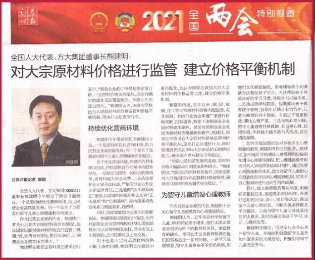全國(guó)人大代表、方大集團(tuán)(000055)董事長(zhǎng)熊建明今年提出了兩份書(shū)面建議,一個(gè)是要持續(xù)優(yōu)化營(yíng)商環(huán)境,助力民營(yíng)企業(yè)高質(zhì)量發(fā)展;另一個(gè)是關(guān)于加強(qiáng)農(nóng)村留守兒童心理健康教育的建議。