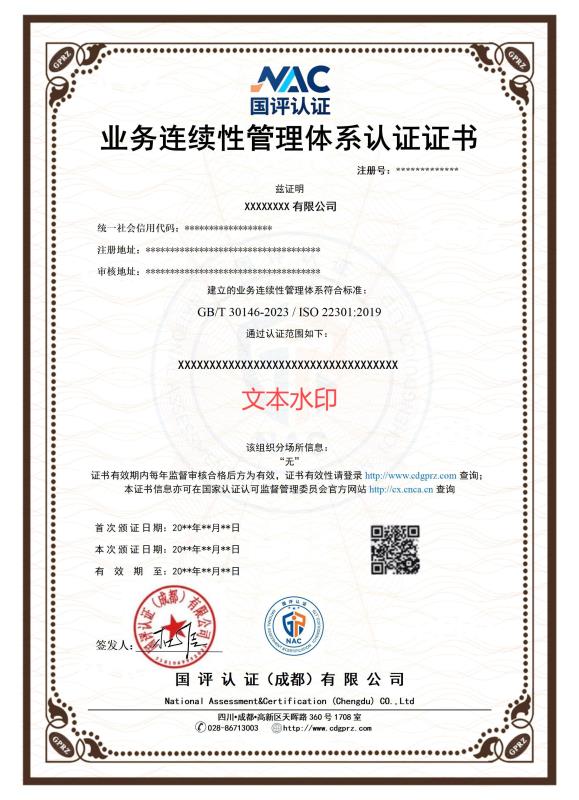 業(yè)務(wù)連續(xù)性管理體系認(rèn)證